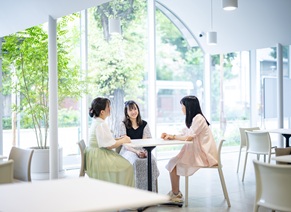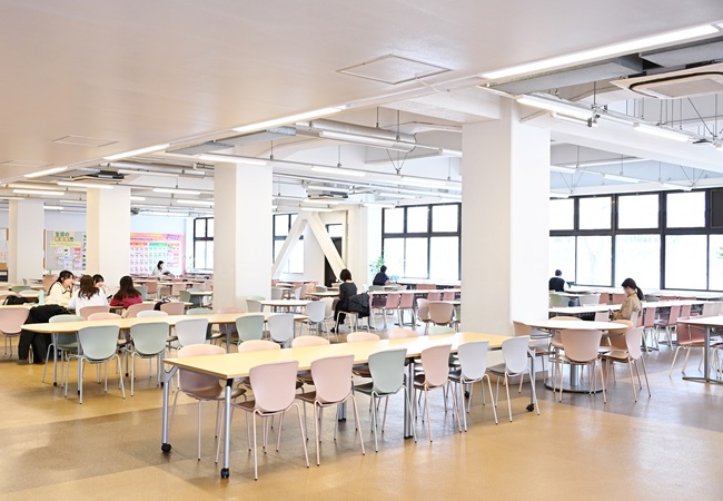 1階に学生食堂、2階にコンビニエンスストア、3階に大学生協カウンターがあります。4階には本学公認サークルのクラブスペースがあり、5階、6階は、調理実習室、保育実習室、研究室として使用しています。