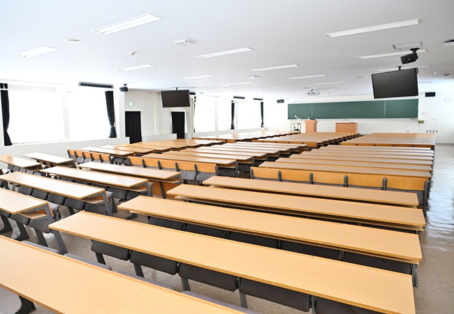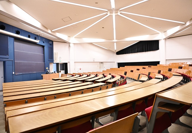 5階建ての教室棟であり、大小普通教室が23教室あります。4階と5階には300名以上収容可能な階段教室が入っています。