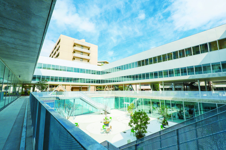 地上8階建てのA棟と、7階建てのB棟が連なっており、主に実験室、研究室として使用しています。A棟には電子顕微鏡などをはじめ最高水準の実験設備が揃い、B棟には「SDGs OASIS」と命名された学生滞在スペースがや、300名以上収容可能な階段教室もあります。